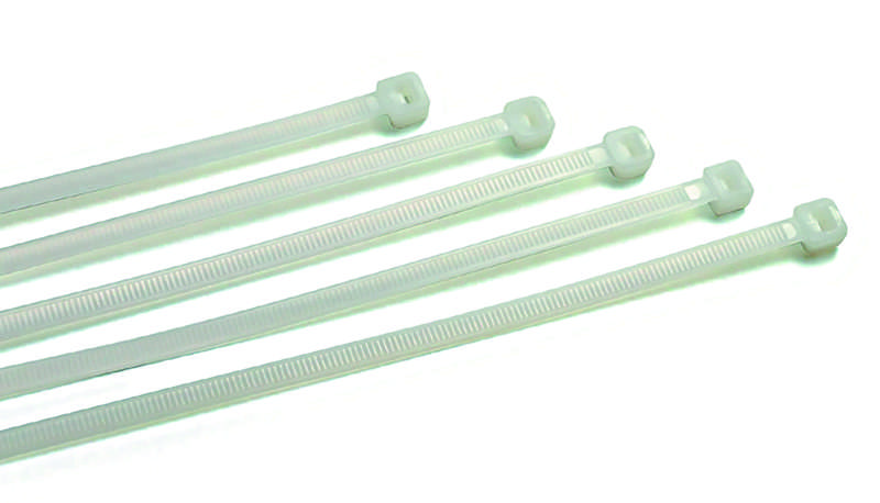 Fascette di cablaggio prodotte in PA 6.6. Colore naturale. Temperatura di utilizzo: -40°+85°C. I bordi laterali sono alti come la cremagliera per evitare di incidere i cavi.