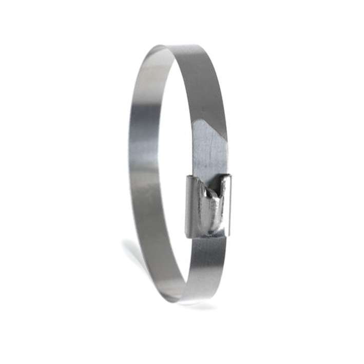 Fascetta autobloccante che richiede solamente l’operazione di trazione ottenuta manualmente o con apposito utensile di serraggio. Nella graffa è presente un meccanismo di blocco composto da una sfera in acciaio che ne assicura la tenuta.