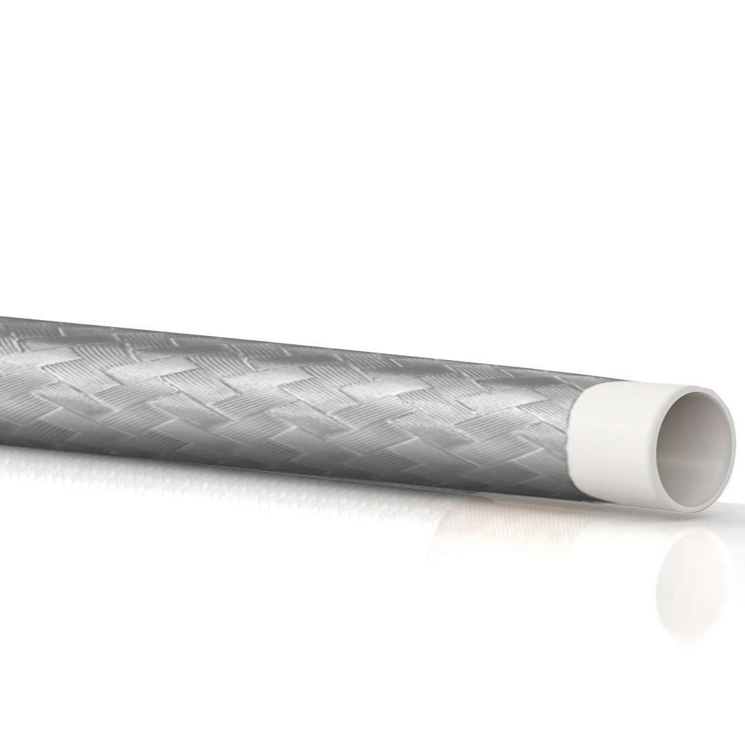 Tubo in P.T.F.E. trecciato in acciaio inox idoneo per impianti idraulici, circuiti di lubrificazione, passaggio carburanti e vapori ad alta temperatura. Particolarmente utilizzato nel settore alimentare, chimico e farmaceutico.