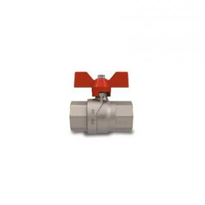 Valvola a sfera Femmina-Femmina nichelata, con Farfalla in alluminio verniciata rossa